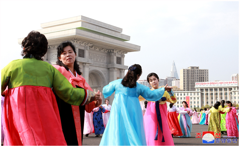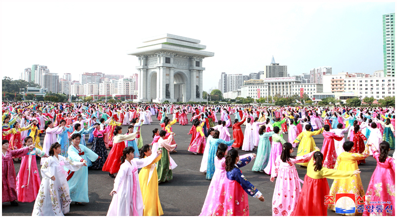 October 12, 2024A dance party of officials and members of the women's union took place at the plaza of the Arch of Triumph on October 10 to celebrate the 79th founding anniversary of the Workers' Party of Korea.
