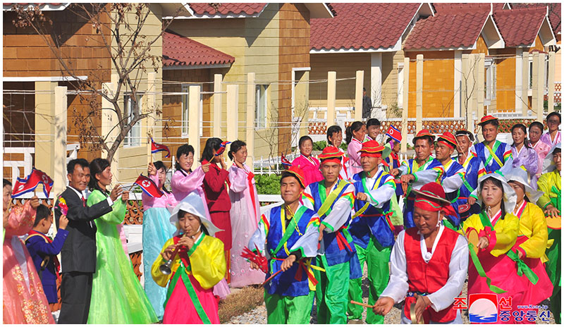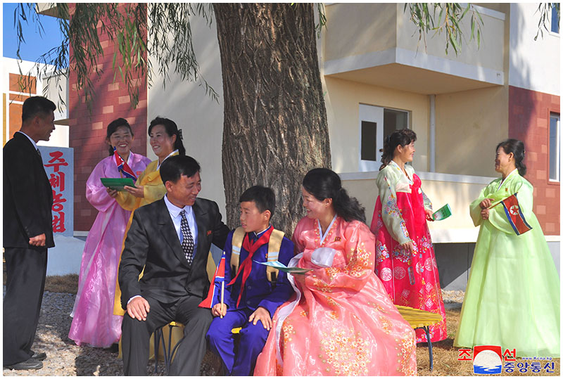 Present at the ceremony for moving into new houses were Mun Chang Il, secretary of the North Hwanghae Provincial Committee of the Workers' Party of Korea, and officials of the Party and power organs and agricultural workers in Hwangju County.
