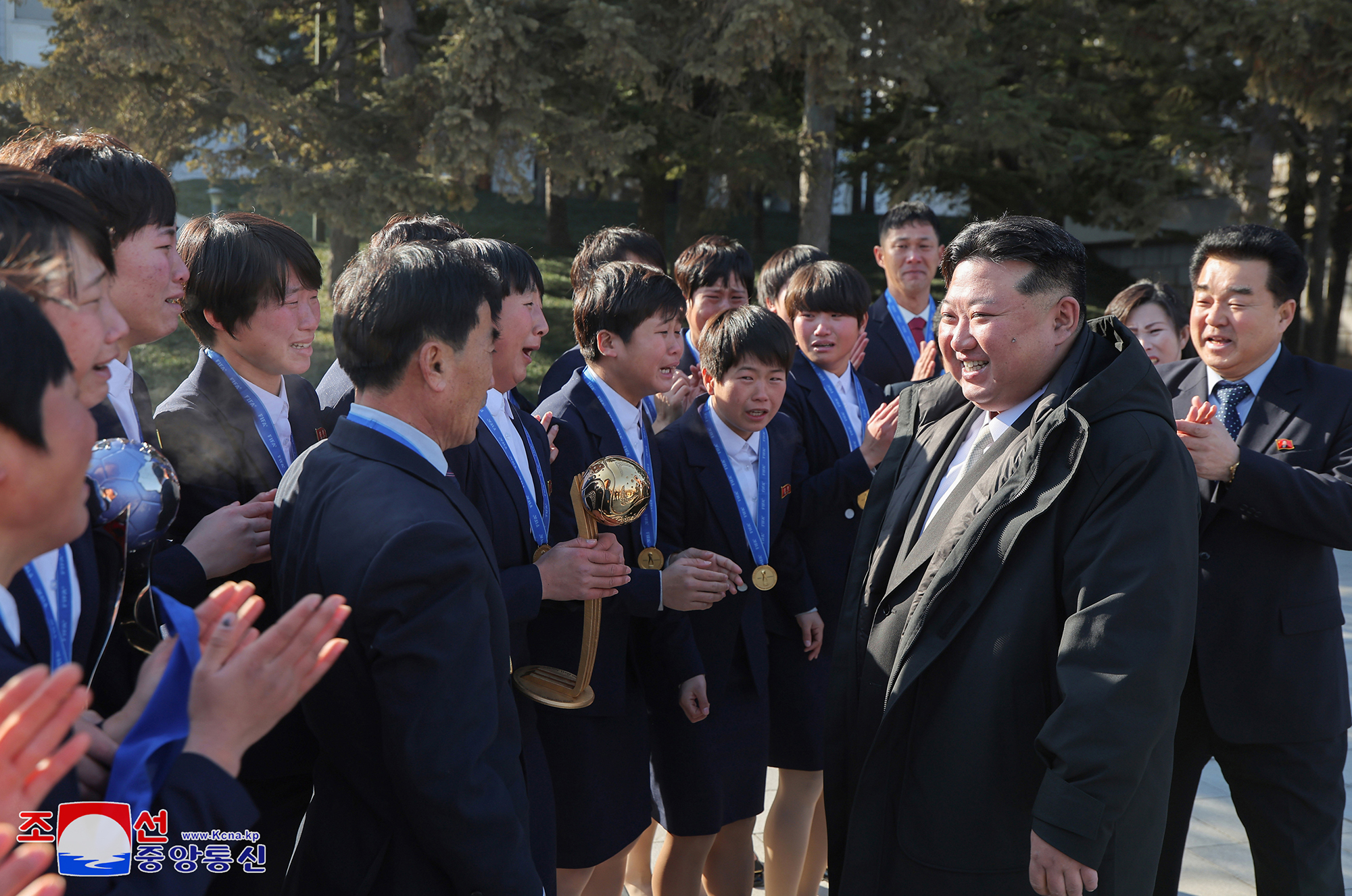 On the same day, he met female footballers and coaches who won the first place in the 2024 FIFA U-17 Women’s World Cup finals, congratulated them on their successful games, which fully demonstrated the honour of the DPRK and added national pride and self-esteem to the feeling of the people across the country, and encouraged them to make uninterrupted development in the future.